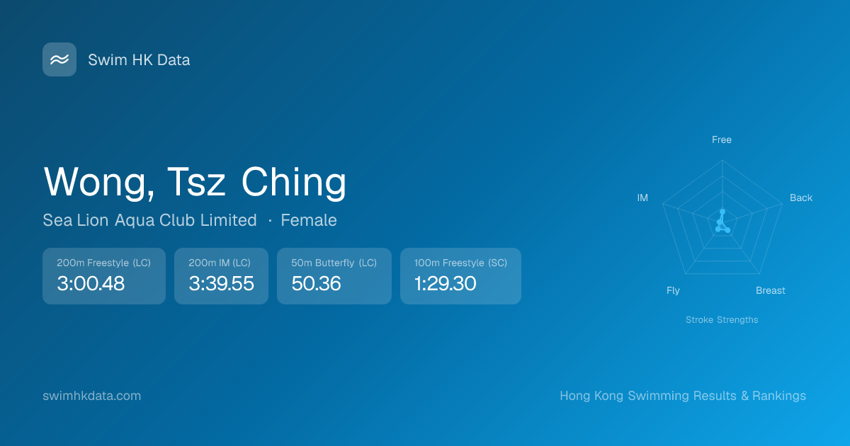 | 50m Butterfly | 50.36 2017-05-29 | 20 | 11 | 2017-05-29 |