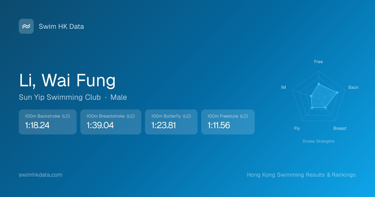 | 50m Butterfly | 35.89 2015-12-14 | 30 | 11 | 2015-12-14 |