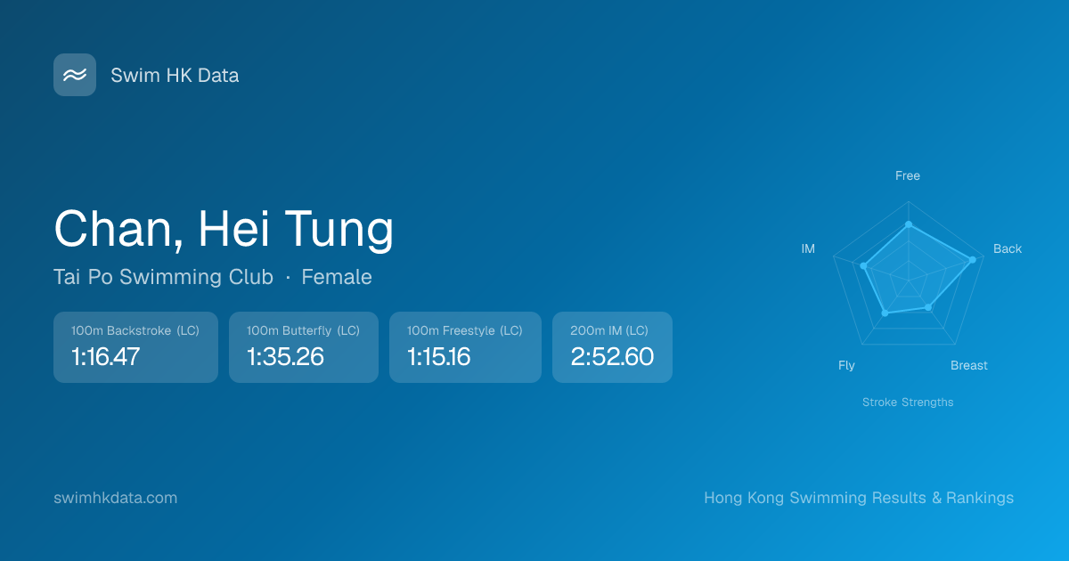 This chart shows how you compare in each stroke based on all your race results. It's just for fun — keep swimming, every practice makes you faster and stronger! 💪