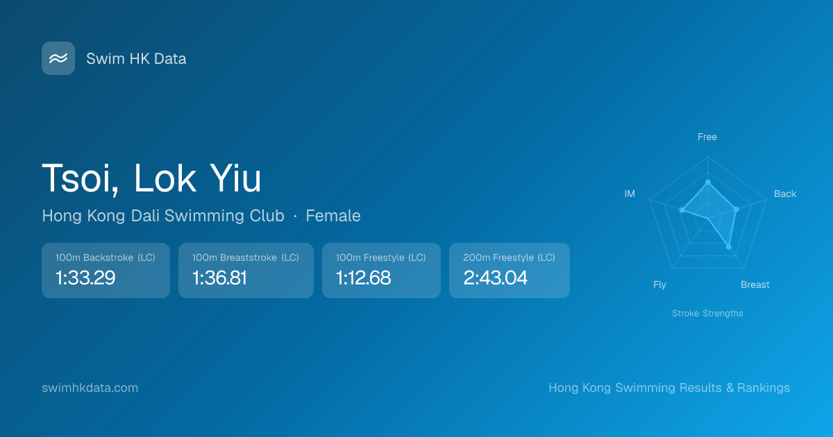 This chart shows how you compare in each stroke based on all your race results. It's just for fun — keep swimming, every practice makes you faster and stronger! 💪