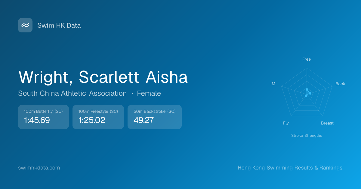 | 50m Backstroke | 49.27 2015-09-02 | 55 | 10 | 2015-09-02 |