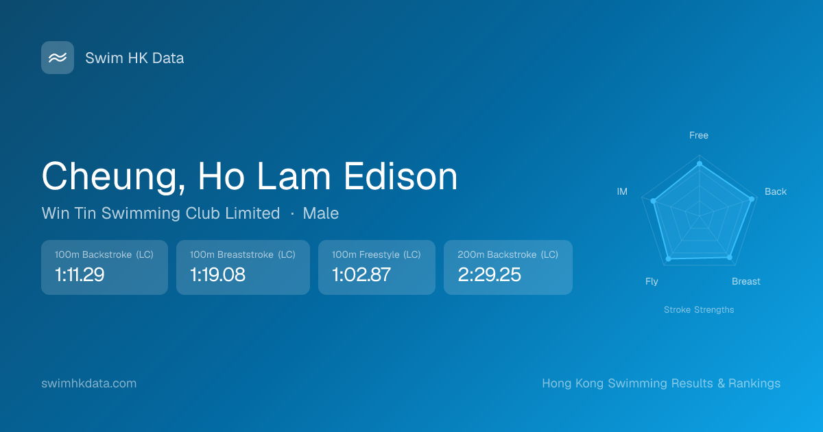 | 50m Freestyle | 26.96 2019-09-02 | 27 | 13 | 2019-09-02 |