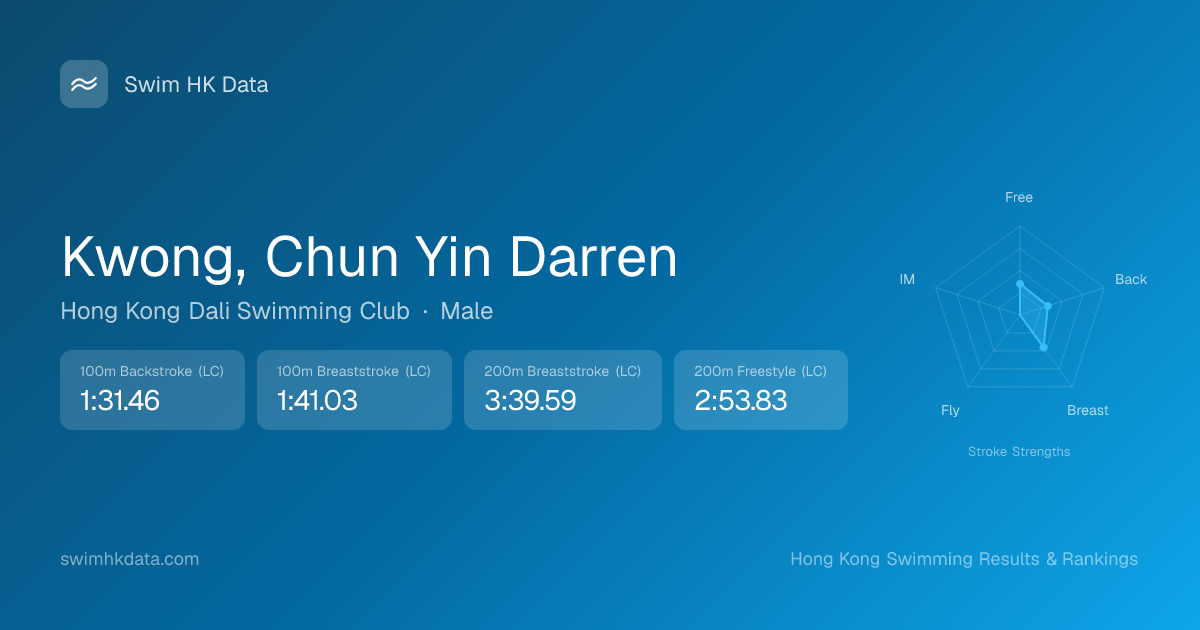 | 50m Breaststroke | 41.76 2019-12-19 | 37 | 12 | 2019-12-19 |