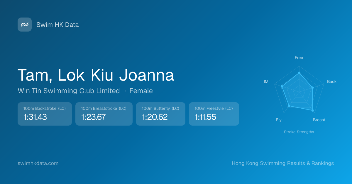 | 50m Butterfly | 34.80 2022-12-30 | 25 | 14 | 2022-12-30 |