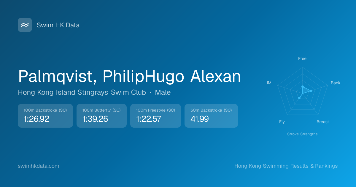 | 50m Butterfly | 41.61 2015-12-14 | 36 | 10 | 2015-12-14 |