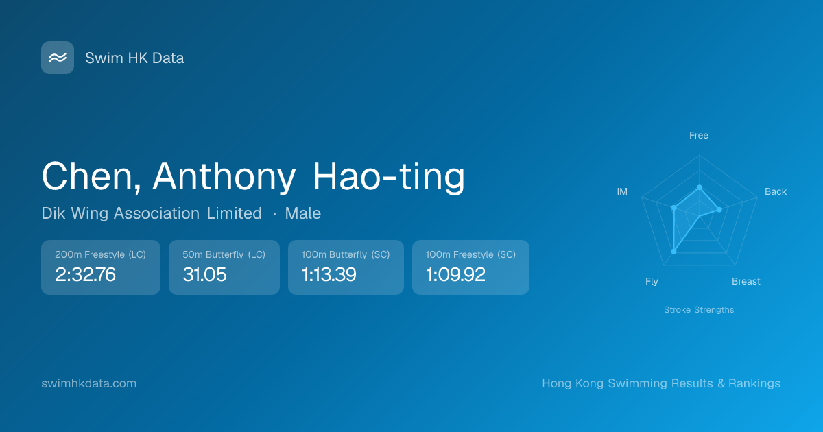 | 50m Butterfly | 33.58 2016-12-12 | 39 | 14 | 2016-12-12 |