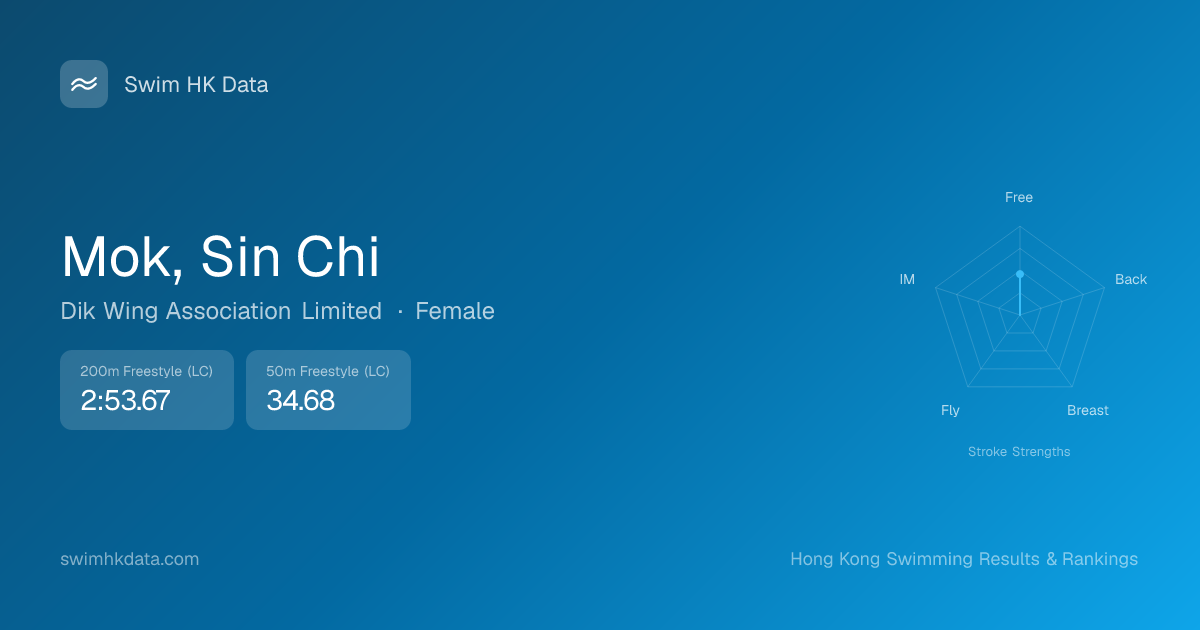 | 50m Freestyle | 34.68 2017-09-25 | 16 | 13 | 2017-09-25 |