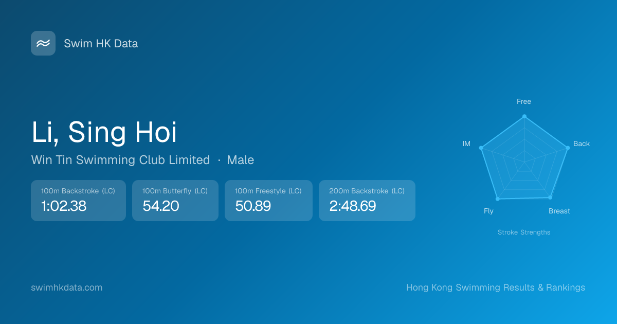 | 100m Butterfly | 54.20 2025-04-14 | 1 | 20 | 2025-04-14 |