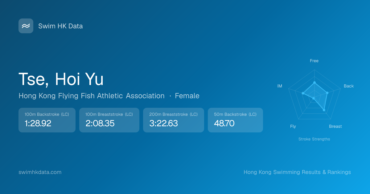 This chart shows how you compare in each stroke based on all your race results. It's just for fun — keep swimming, every practice makes you faster and stronger! 💪