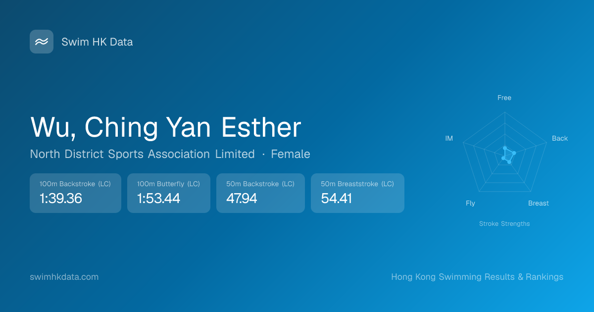 | 50m Backstroke | 47.94 2017-06-26 | 22 | 10 | 2017-06-26 |