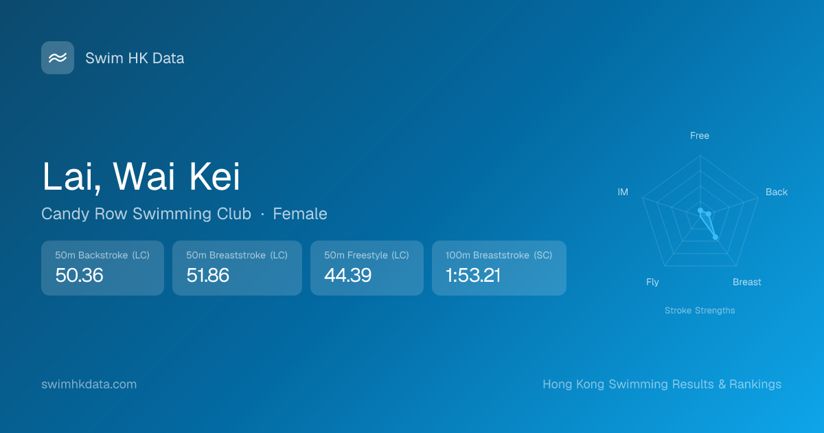 | 50m Breaststroke | 51.86 2017-06-26 | 19 | 10 | 2017-06-26 |