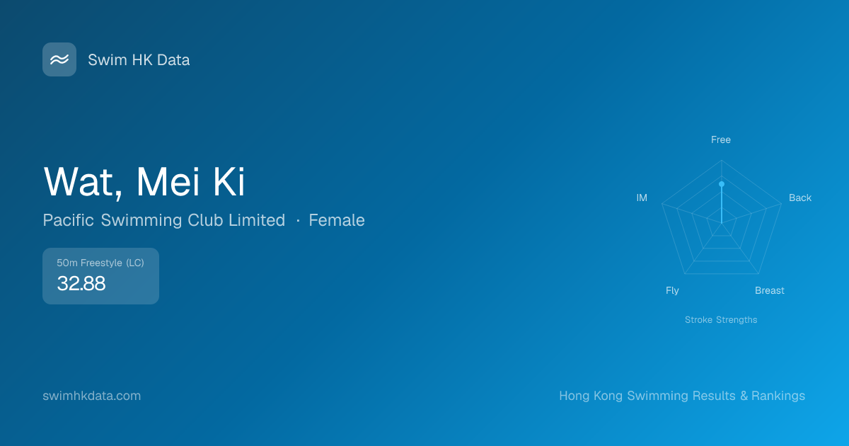 | 50m Freestyle | 32.88 2016-04-18 | 19 | 14 | 2016-04-18 |