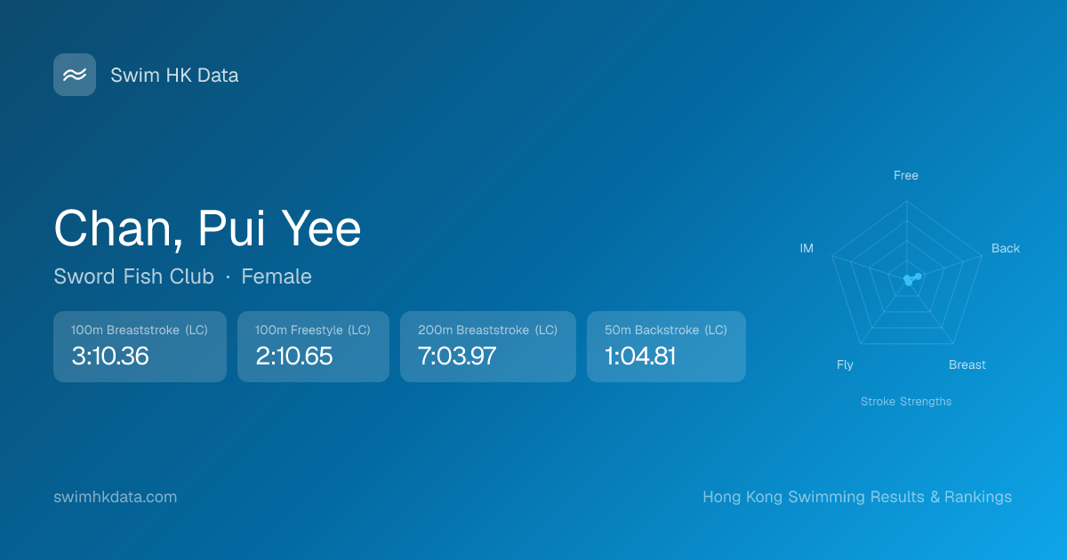 | 50m Freestyle | 53.32 2019-09-24 | 1 | 75 | 2019-09-24 |
