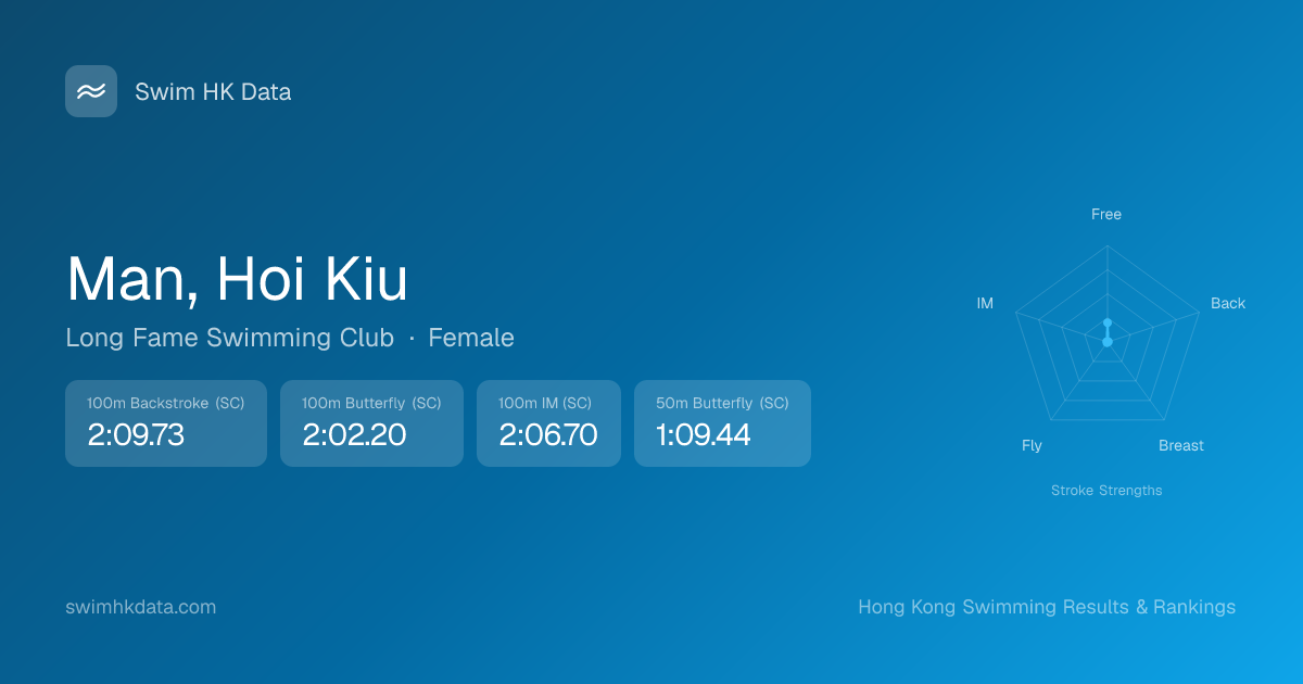 | 100m Butterfly | 2:02.20 2018-01-16 | 23 | 11 | 2018-01-16 |