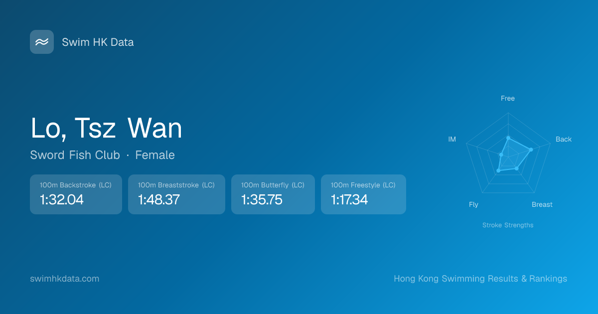 | 50m Butterfly | 39.37 2017-12-04 | 53 | 12 | 2017-12-04 |