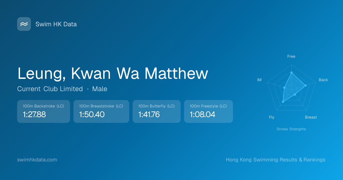 | 100m Individual Medley | 1:26.36 2023-05-12 | 95 | 15 | 2023-05-12 |