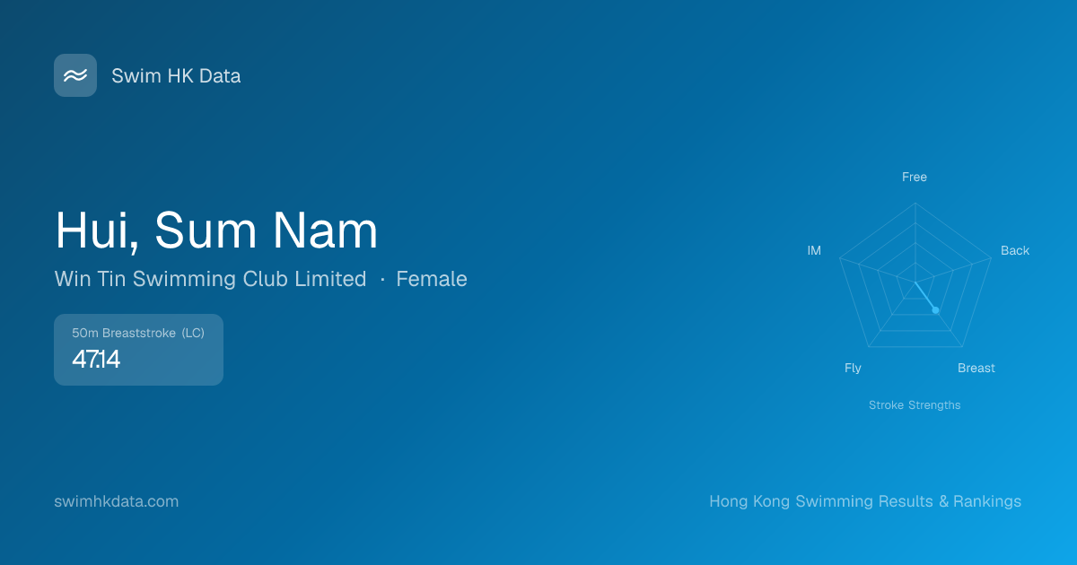 | 50m Breaststroke | 47.14 2016-07-12 | 10 | 10 | 2016-07-12 |