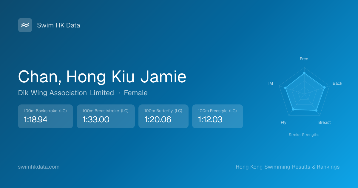 | 50m Butterfly | 33.82 2019-12-19 | 16 | 12 | 2019-12-19 |