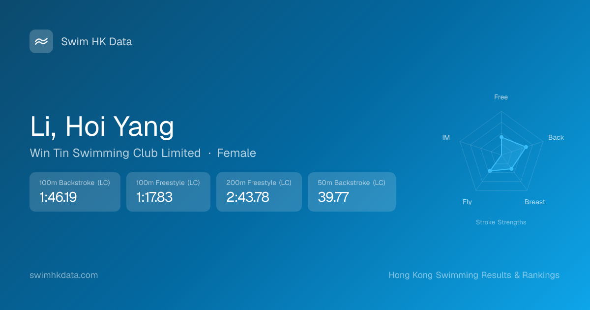 | 50m Backstroke | 39.77 2019-09-21 | 26 | 10 | 2019-09-21 |