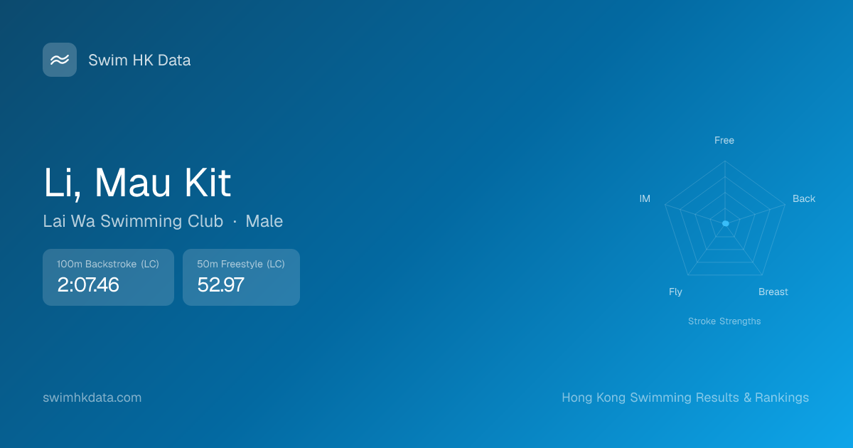 | 50m Freestyle | 52.97 2015-09-22 | 74 | 8 | 2015-09-22 |