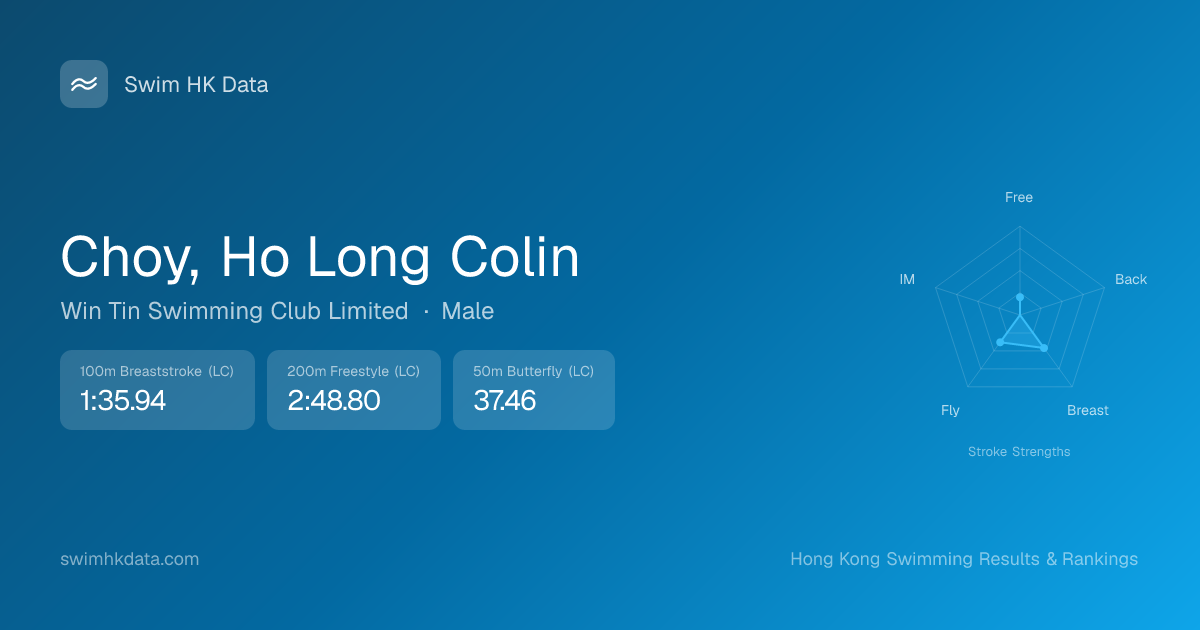 | 50m Butterfly | 37.46 2015-06-08 | 2 | 10 | 2015-06-08 |