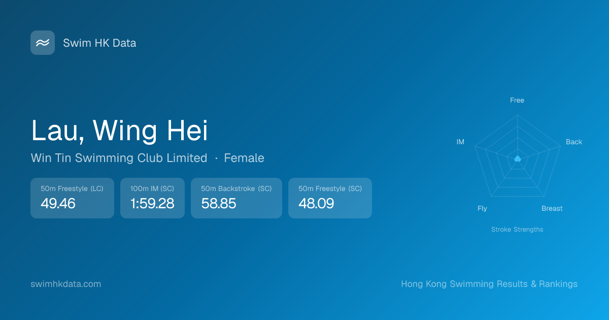 | 50m Freestyle | 49.46 2015-09-21 | 19 | 8 | 2015-09-21 |