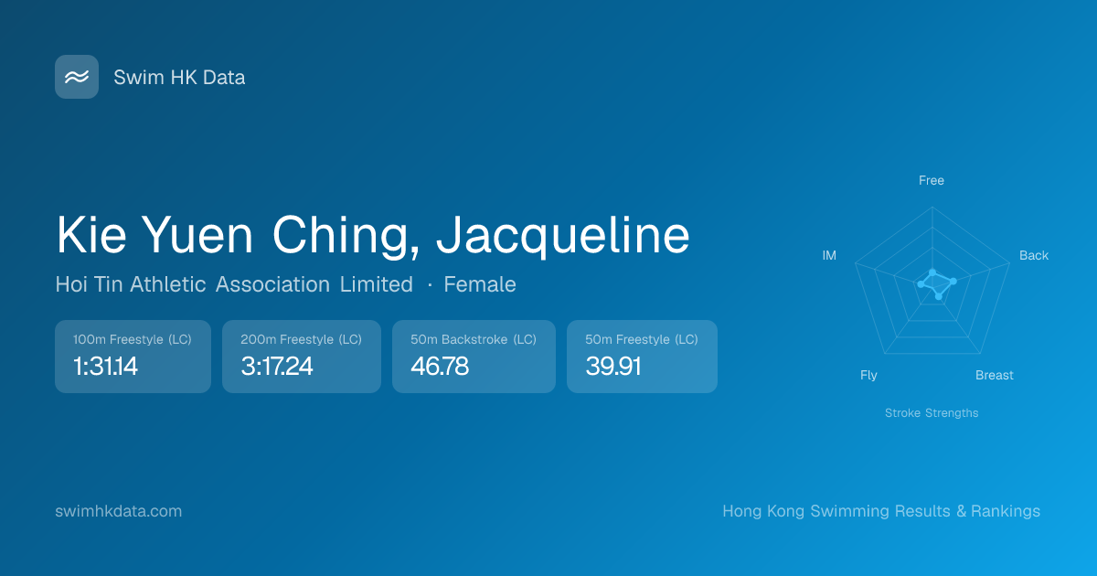 | 50m Freestyle | 39.91 2019-09-30 | 46 | 9 | 2019-09-30 |