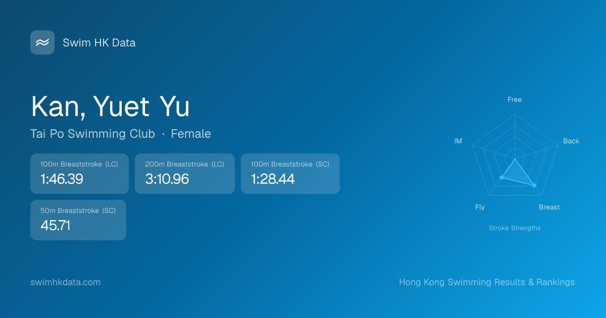 This chart shows how you compare in each stroke based on all your race results. It's just for fun — keep swimming, every practice makes you faster and stronger! 💪