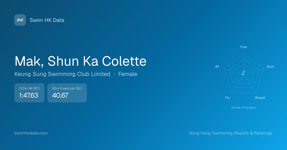 | 100m Individual Medley | 1:47.63 2017-01-16 | 86 | 11 | 2017-01-16 |