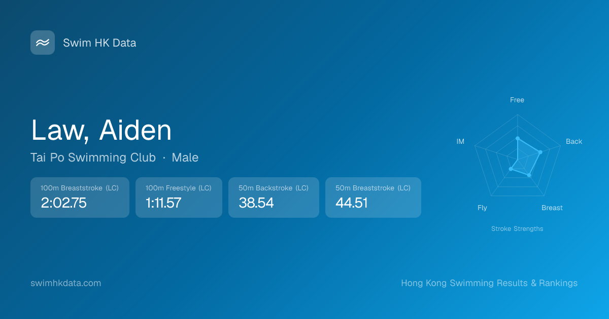 | 50m Backstroke | 39.51 2019-12-24 | 36 | 11 | 2019-12-24 |