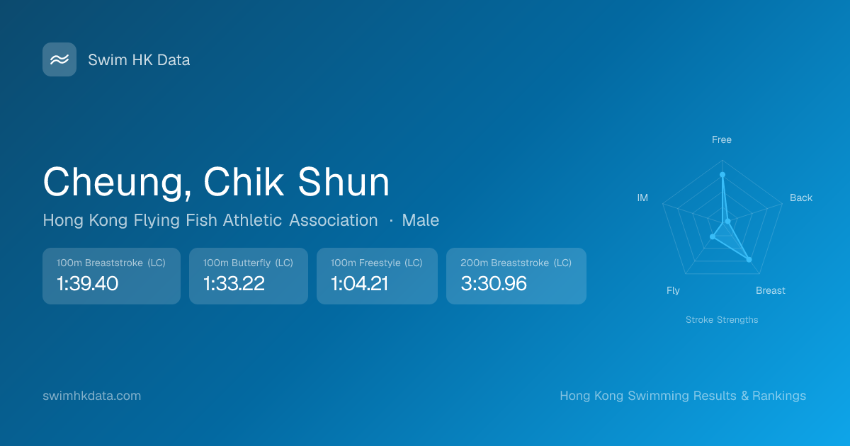 | 100m Breaststroke | 1:20.83 2022-01-04 | 30 | 13 | 2022-01-04 |
