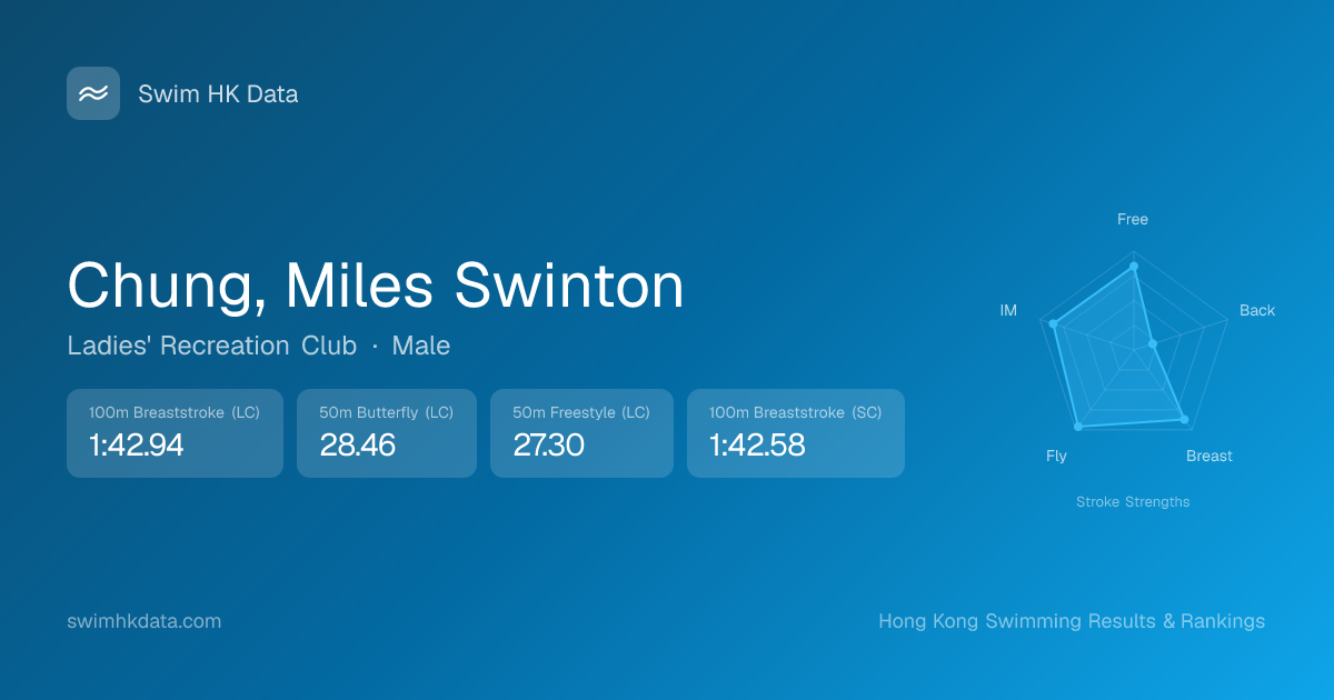 | 50m Breaststroke | 33.35 2019-09-24 | 1 | 40 | 2019-09-24 |