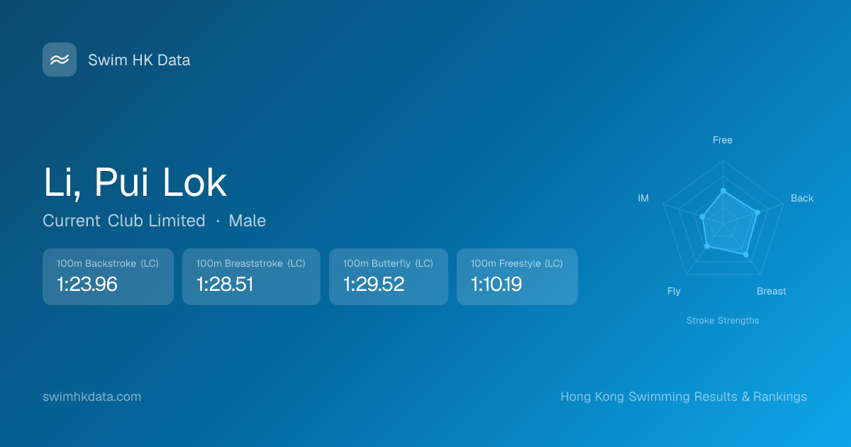| 50m Freestyle | 31.91 2017-10-19 | 39 | 13 | 2017-10-19 |