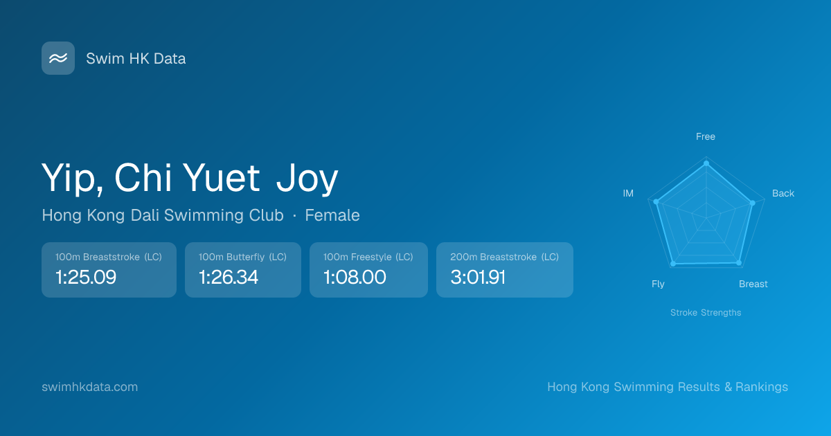| 50m Butterfly | 33.64 2022-06-07 | 28 | 13 | 2022-06-07 |