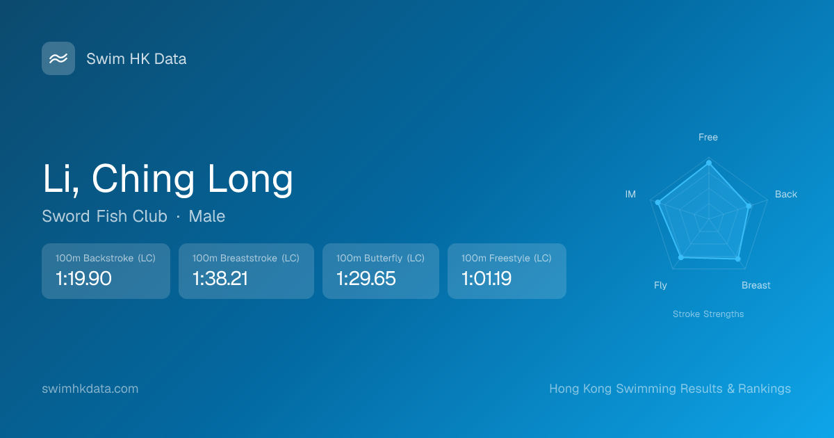 | 50m Butterfly | 34.73 2019-12-19 | 54 | 12 | 2019-12-19 |