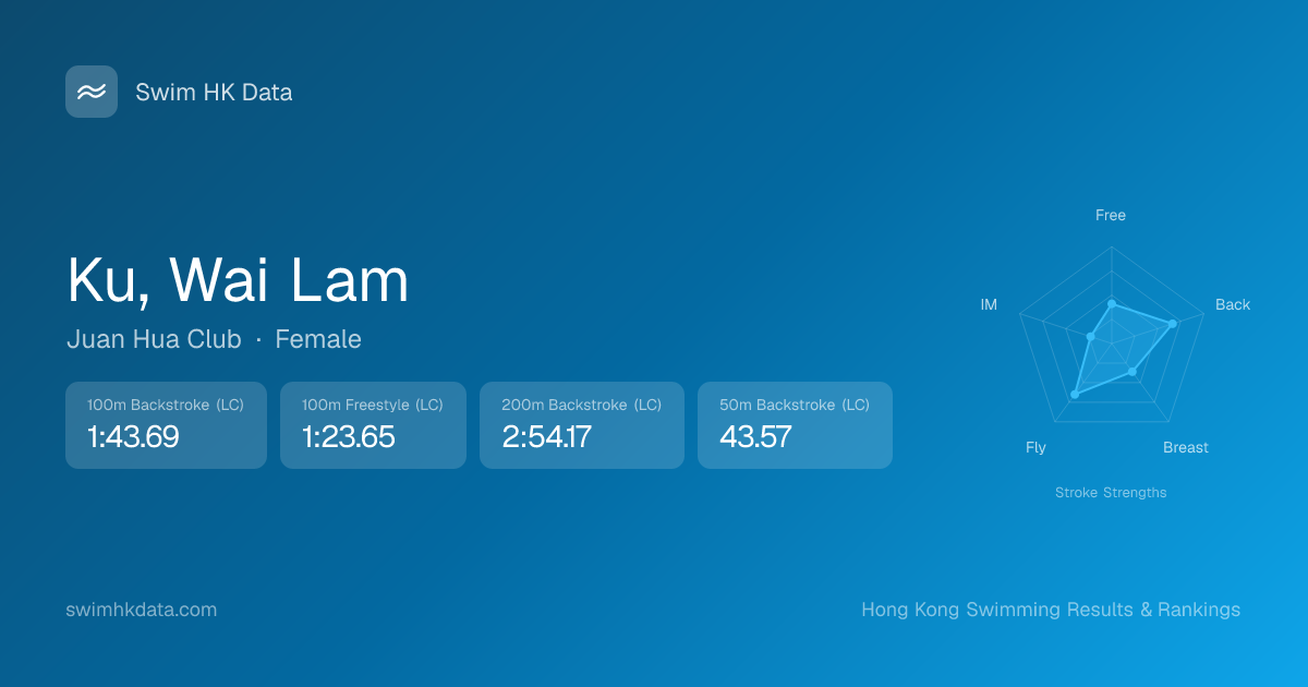 | 50m Backstroke | 43.57 2017-06-26 | 1 | 8 | 2017-06-26 |