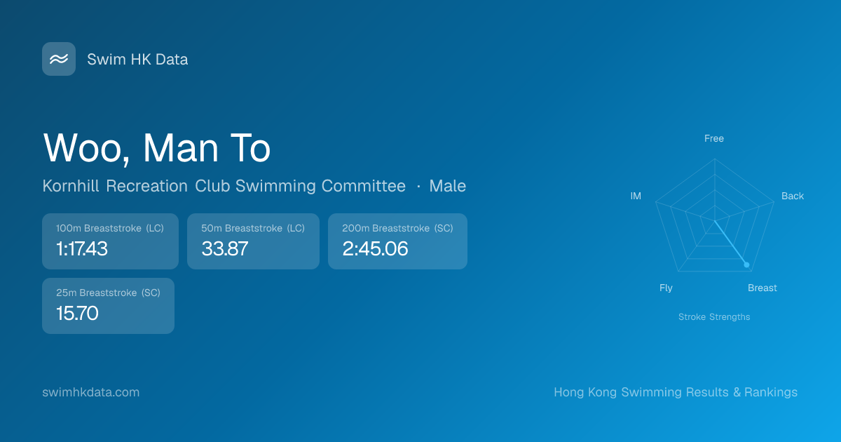 | 25m Breaststroke | 15.70 2019-09-24 | 1 | 20 | 2019-09-24 |