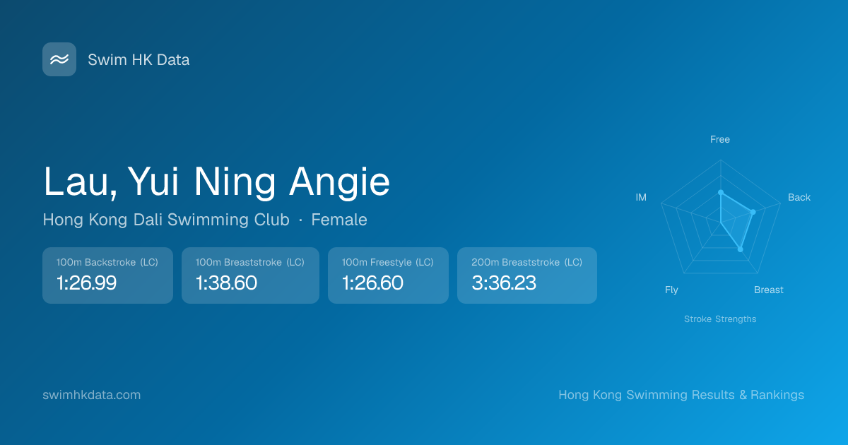 This chart shows how you compare in each stroke based on all your race results. It's just for fun — keep swimming, every practice makes you faster and stronger! 💪