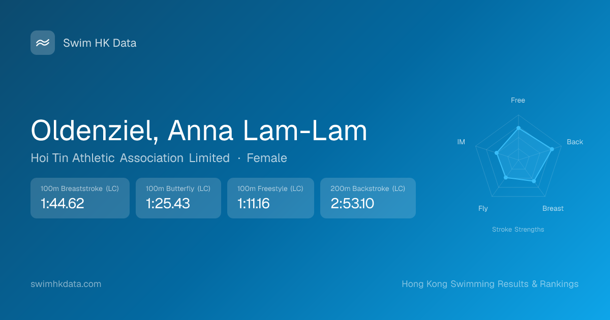 | 100m Individual Medley | 1:23.44 2019-04-02 | 58 | 12 | 2019-04-02 |