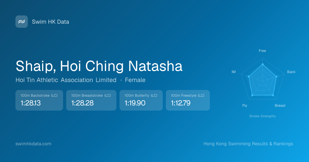 | 100m Butterfly | 1:19.90 2021-09-27 | 10 | 14 | 2021-09-27 |