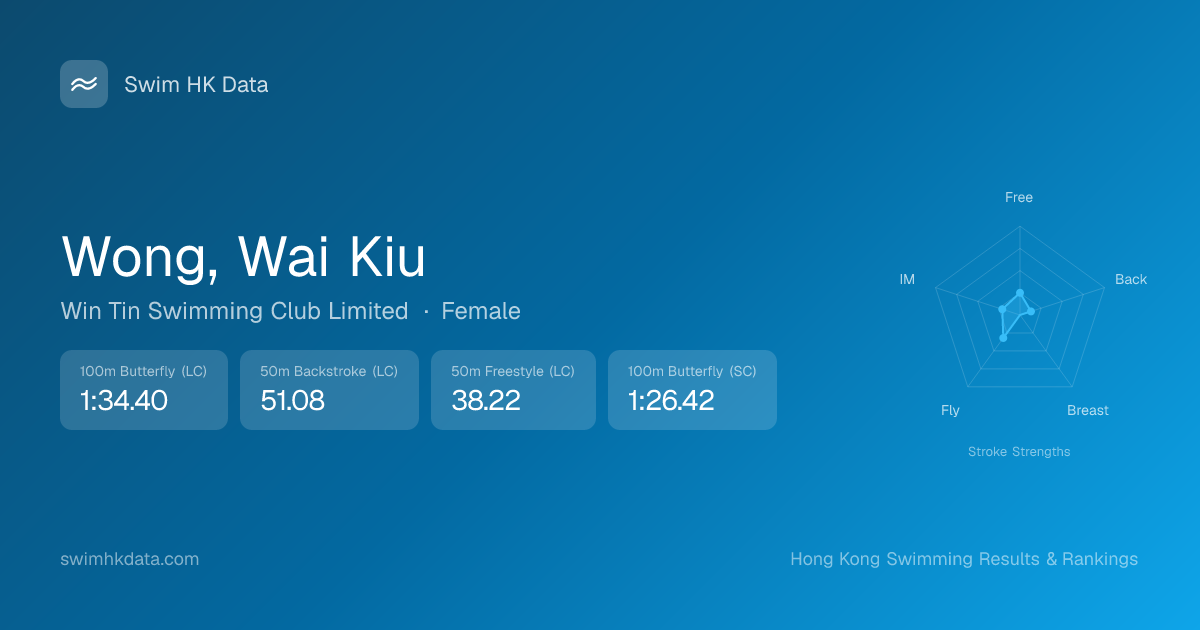 | 50m Backstroke | 51.08 2017-06-26 | 34 | 9 | 2017-06-26 |