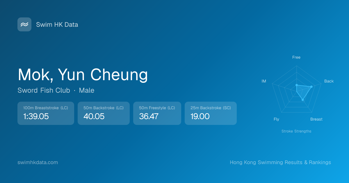 | 50m Backstroke | 40.05 2019-12-06 | 1 | 69 | 2019-12-06 |