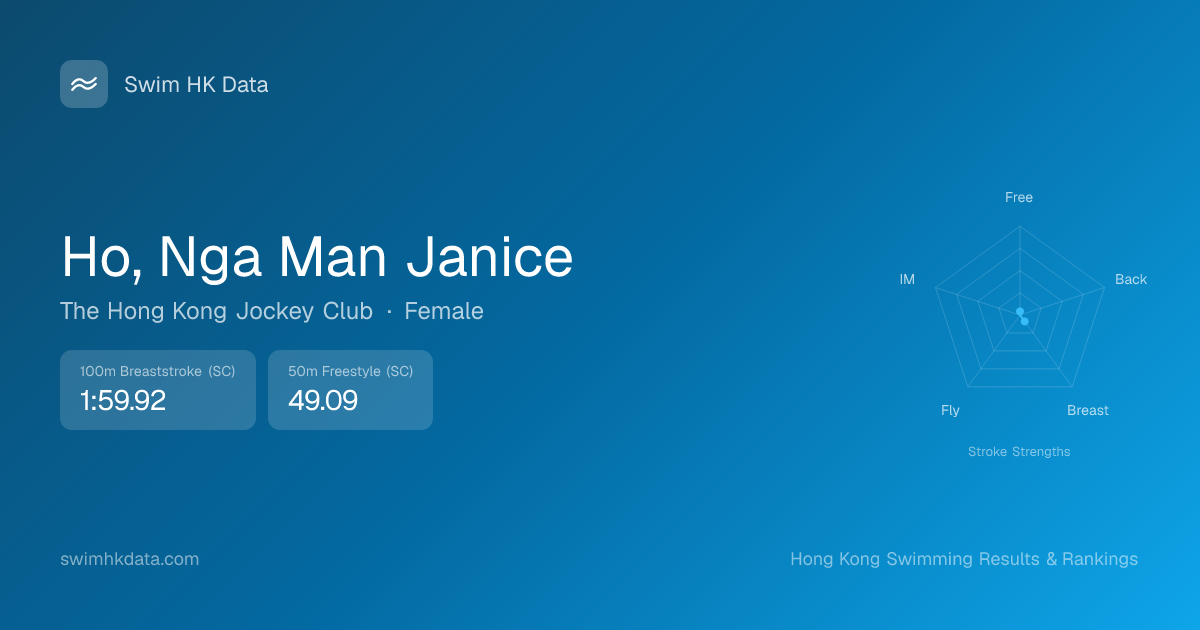 | 50m Freestyle | 49.09 2018-01-16 | 134 | 10 | 2018-01-16 |