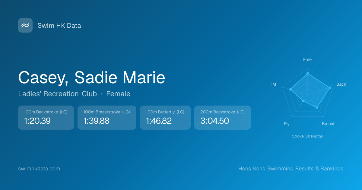 | 50m Butterfly | 43.79 2018-06-05 | 27 | 11 | 2018-06-05 |