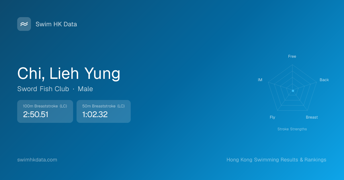 | 50m Breaststroke | 1:02.32 2019-12-06 | 1 | 85 | 2019-12-06 |