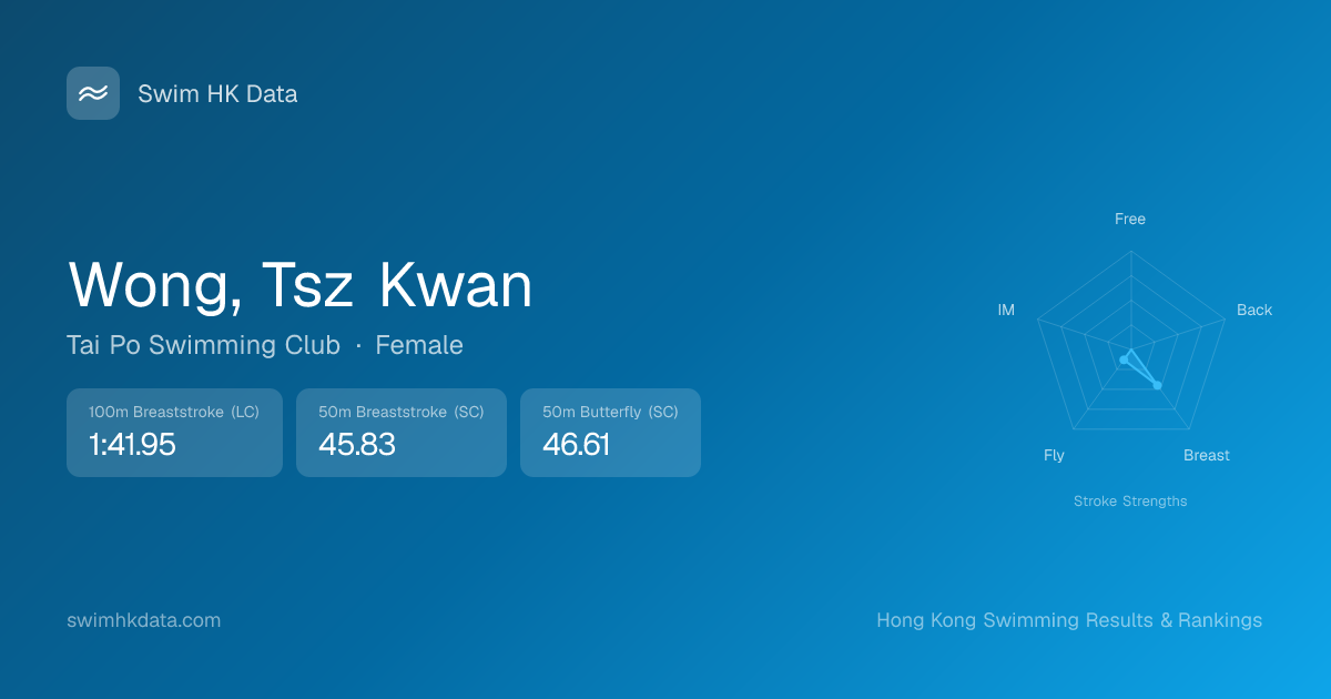 | 50m Butterfly | 46.61 2017-03-07 | 61 | 12 | 2017-03-07 |