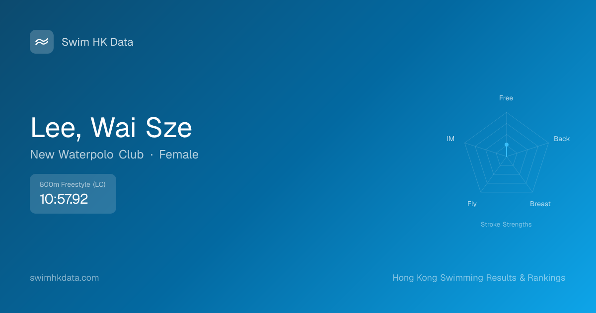 | 800m Freestyle | 10:57.92 2023-03-27 | 1 | 34 | 2023-03-27 |