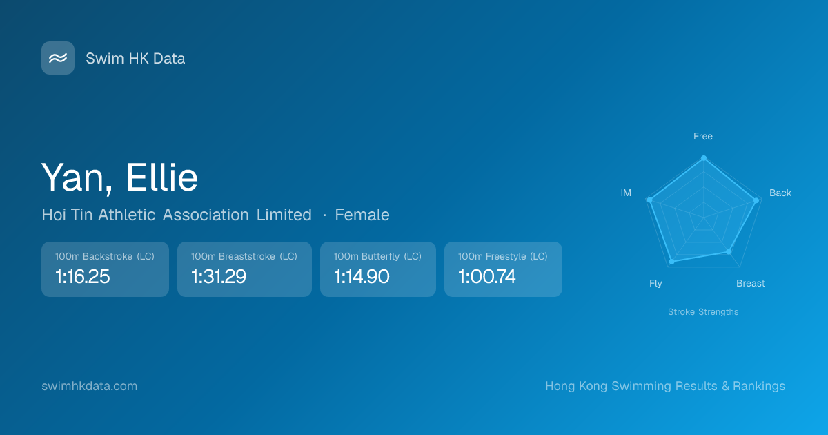 | 100m Butterfly | 1:14.90 2025-09-07 | 25 | 15 | 2025-09-07 |
