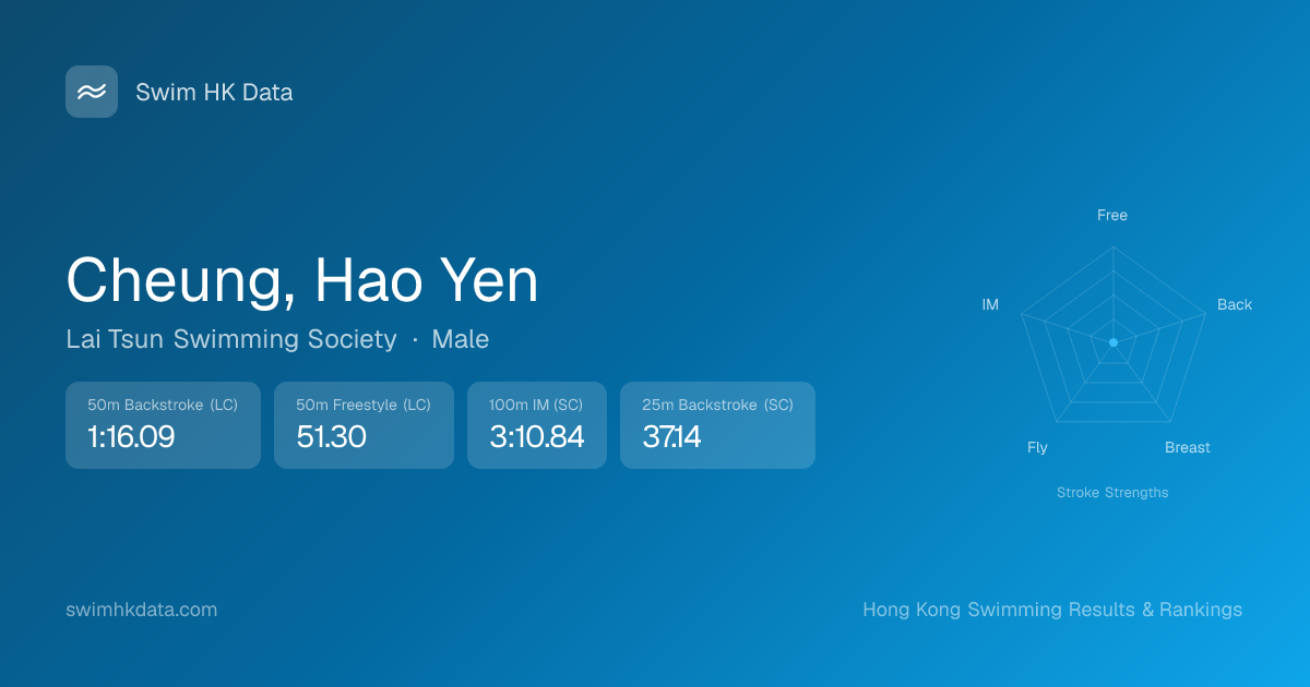| 25m Backstroke | 37.14 2023-02-13 | 1 | 80 | 2023-02-13 |