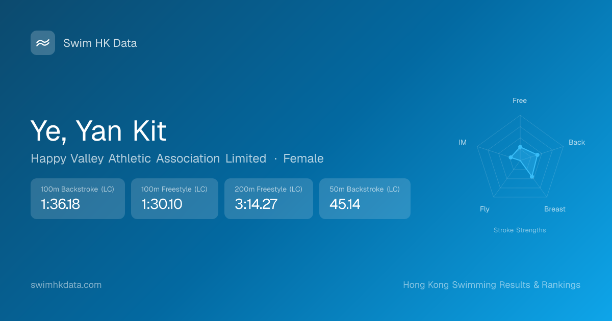 | 100m Backstroke | 1:36.18 2017-09-25 | 12 | 12 | 2017-09-25 |